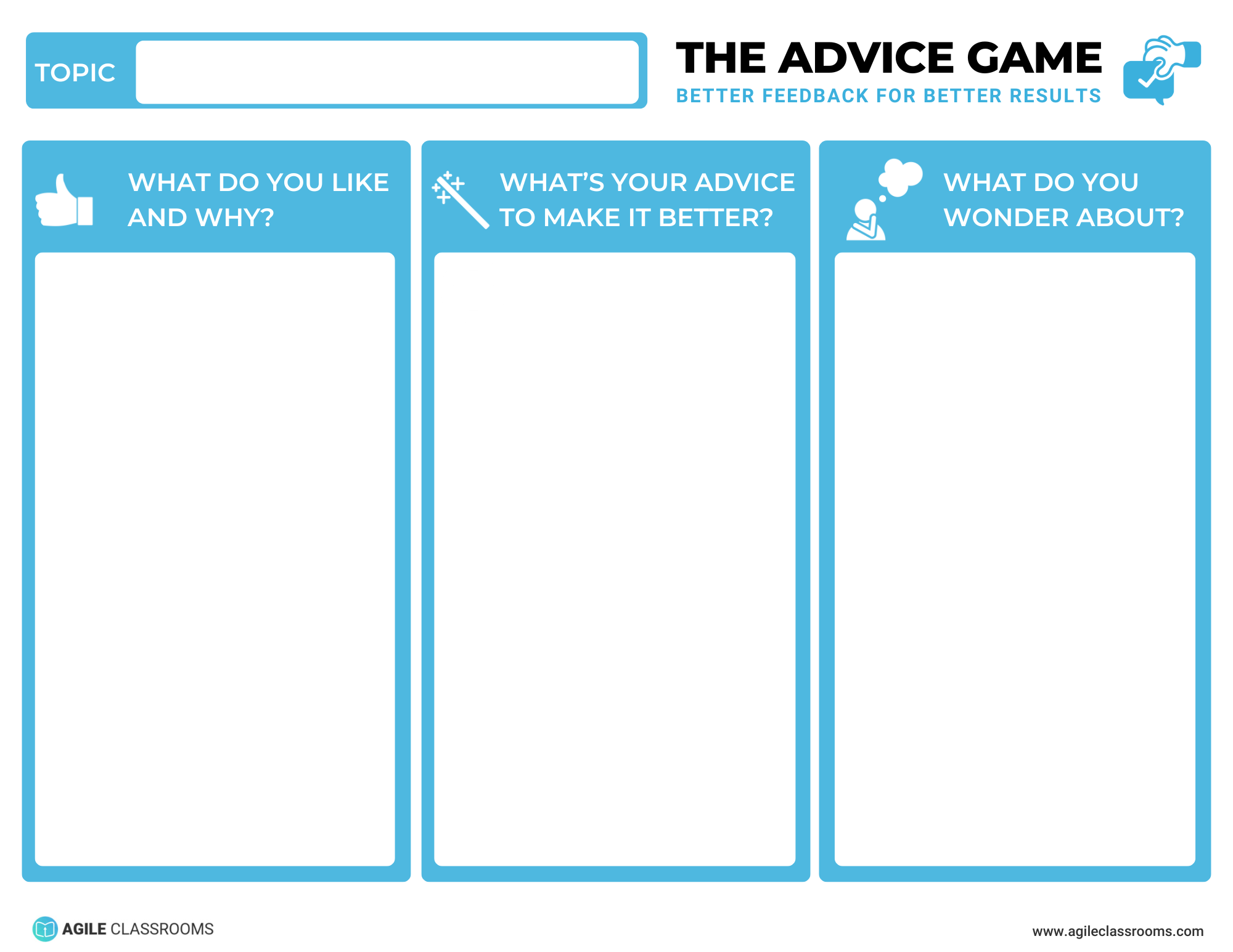 Learn the steps and some examples for using the Advice Game in our Methods Mentor articles.