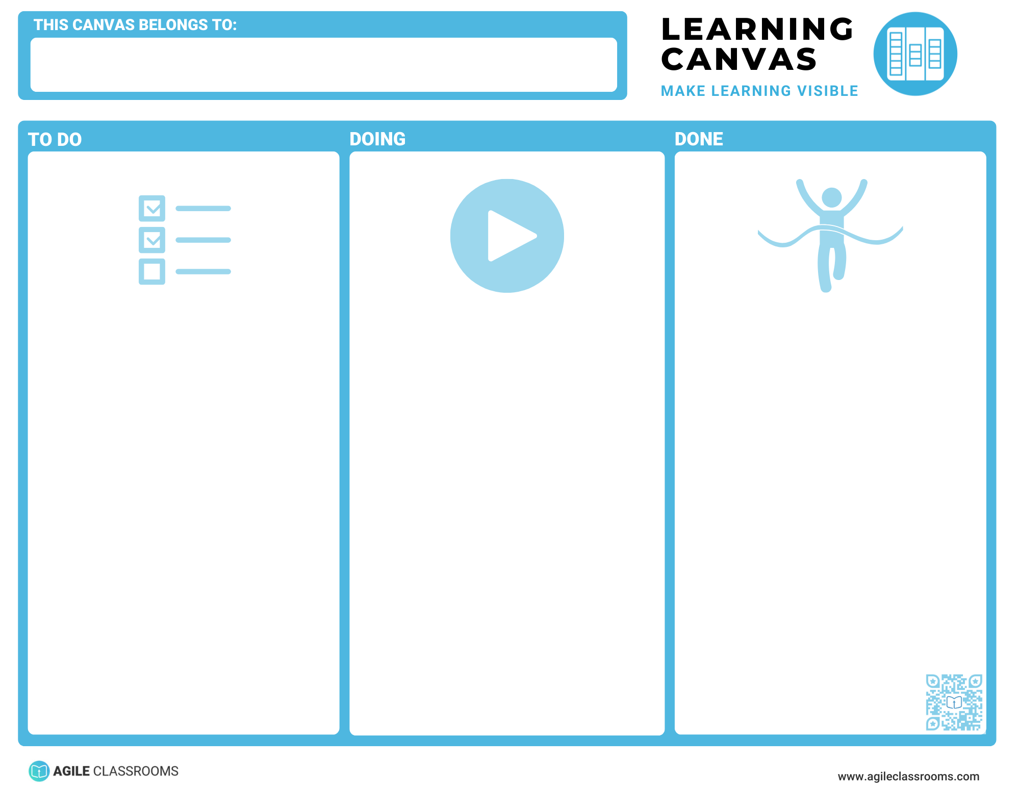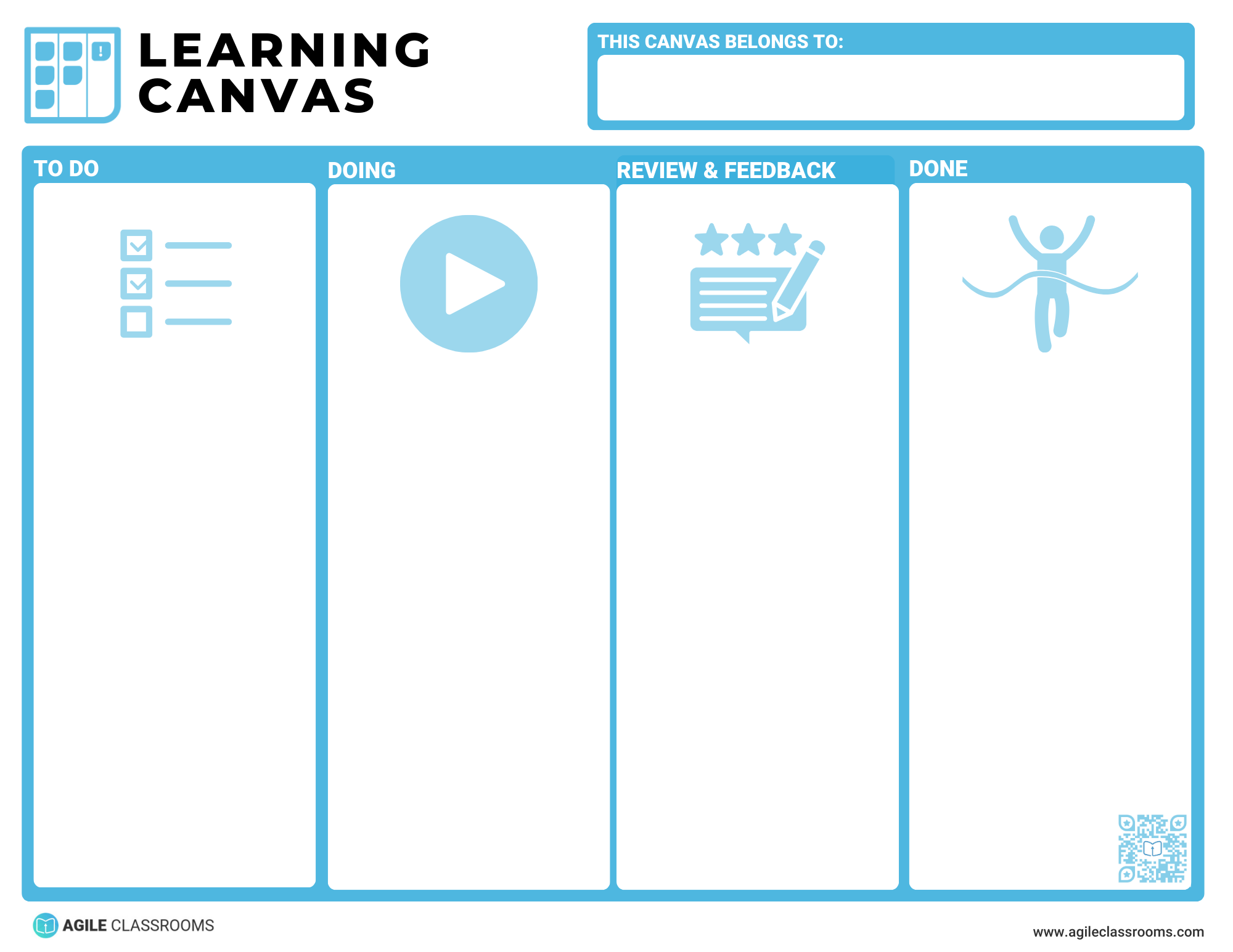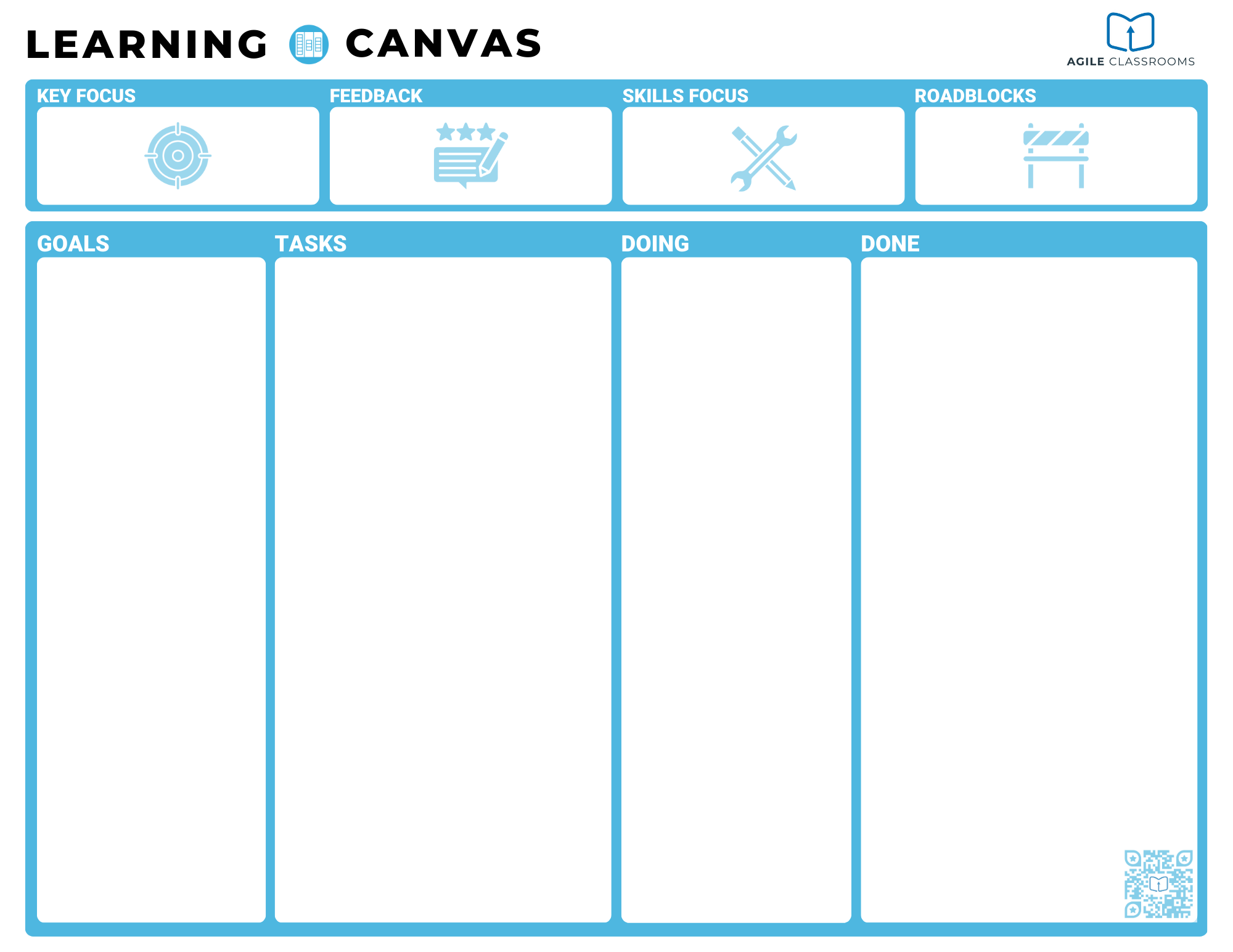 There are different types of Learning Canvases you can use and we have more coming! Choose one that fits and make the progress and process if learning visible!