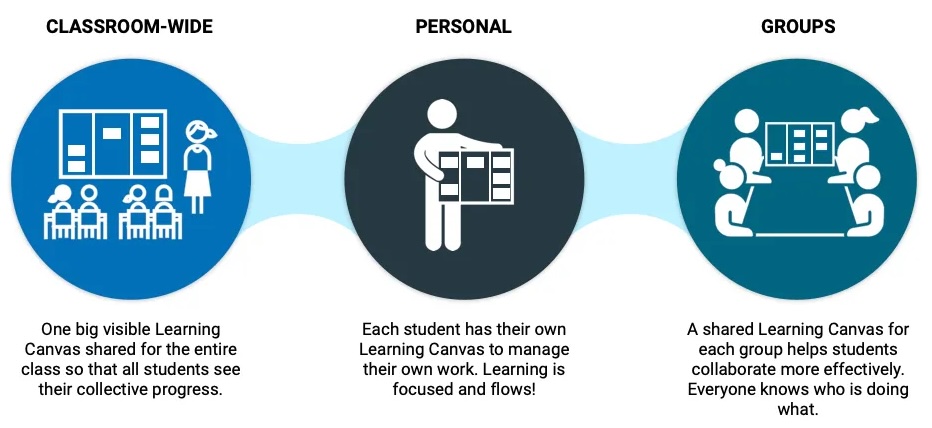You can use the Learning Canvas is three contexts in the classroom: