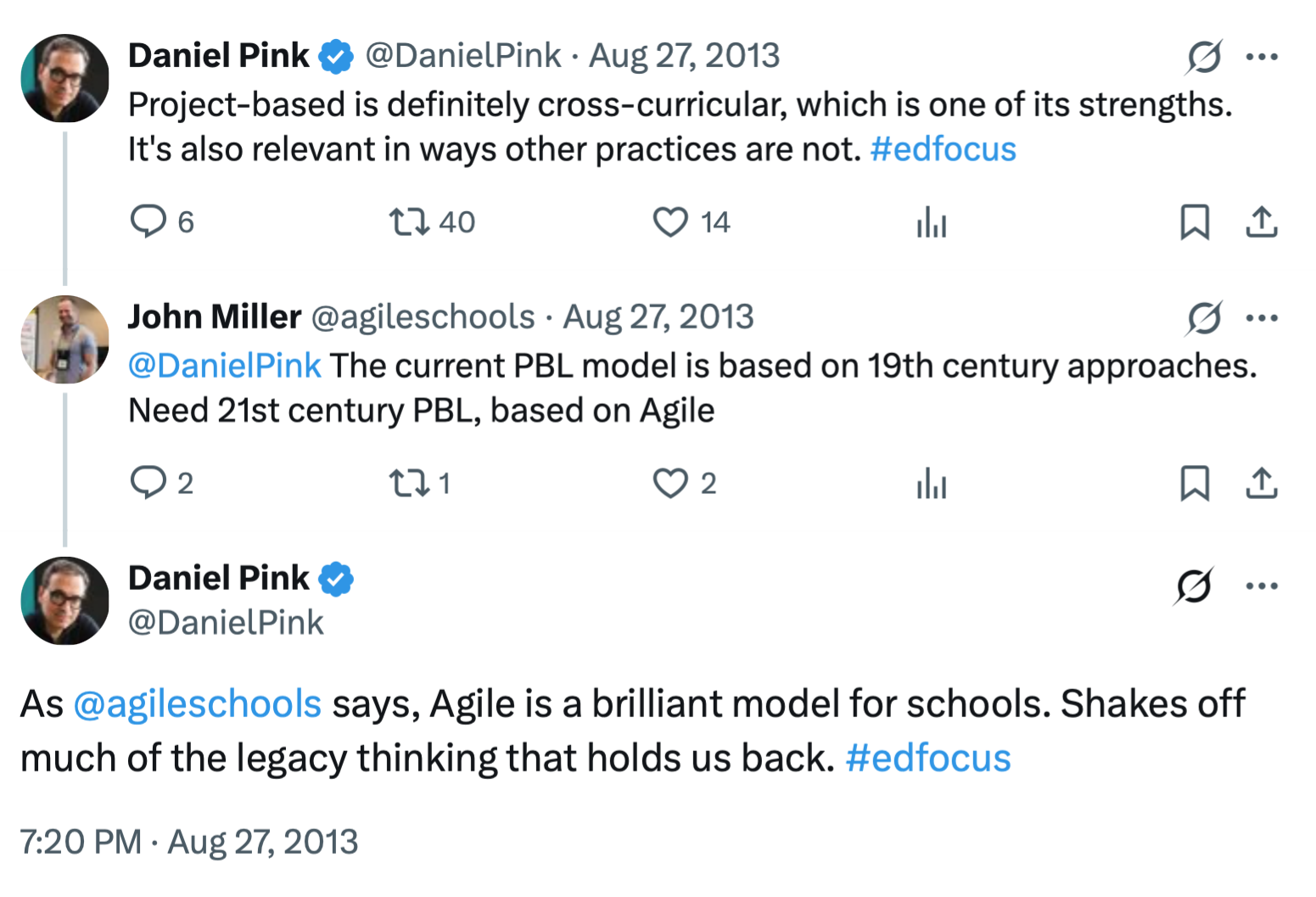 “Agile is a brilliant model for schools. Shakes off much of the legacy thinking that holds us back.”