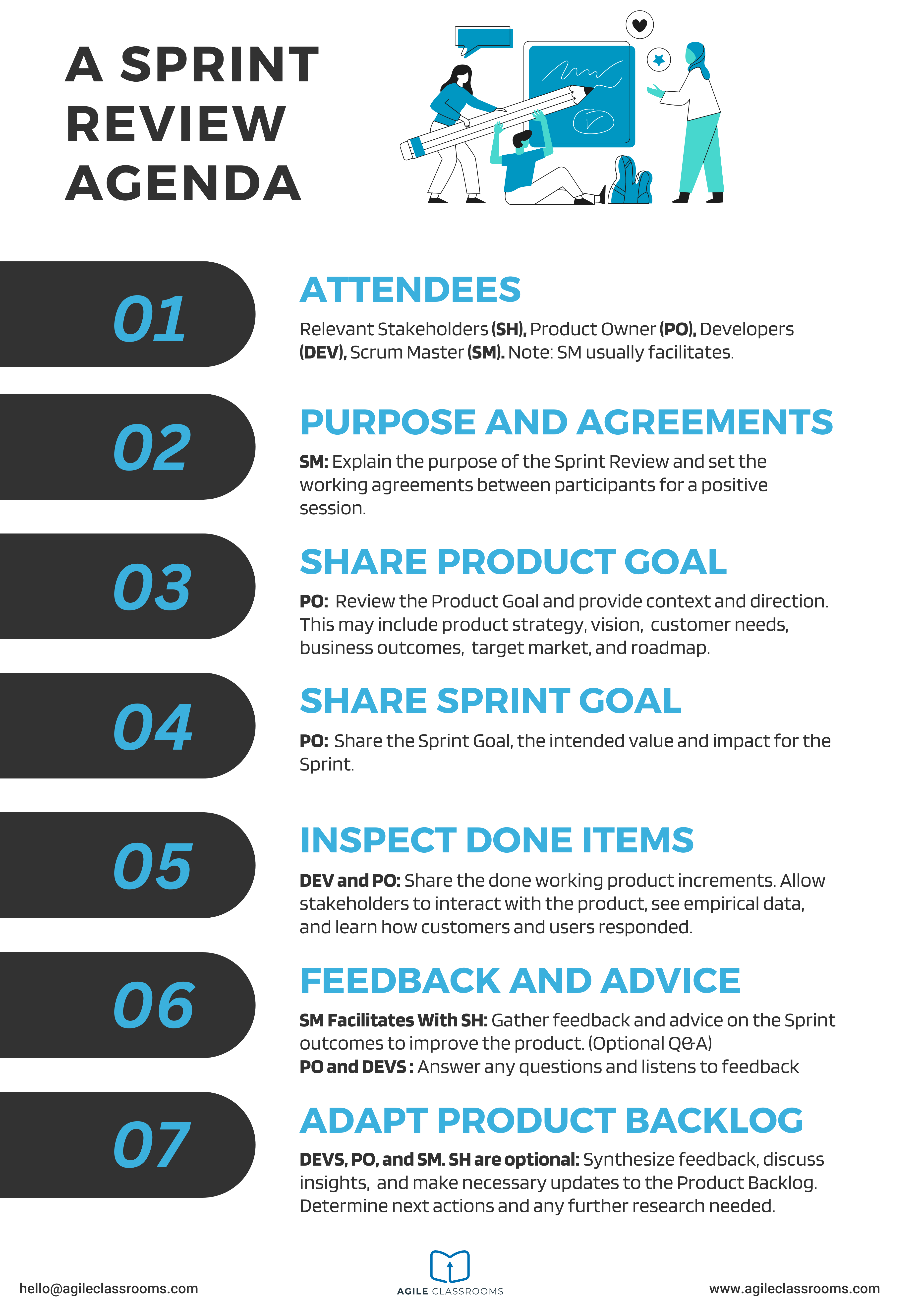 📌 Want a visual? Download the Sprint Review Agenda Graphic or explore all the Sprint Event Agendas in one place.