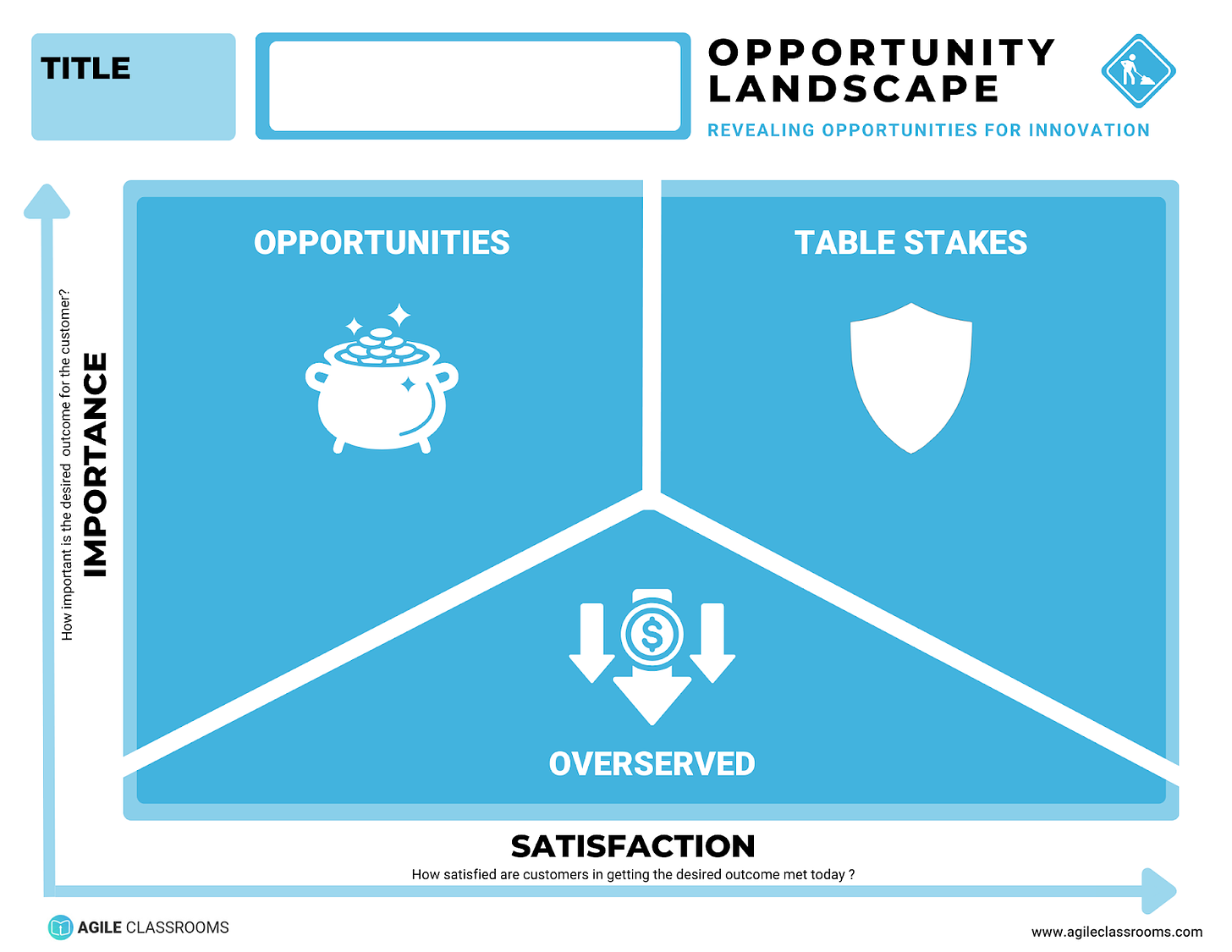 The answers to these questions plot each outcome on the Opportunity Landscape, which is divided into three categories based on the intersection of importance and satisfaction: