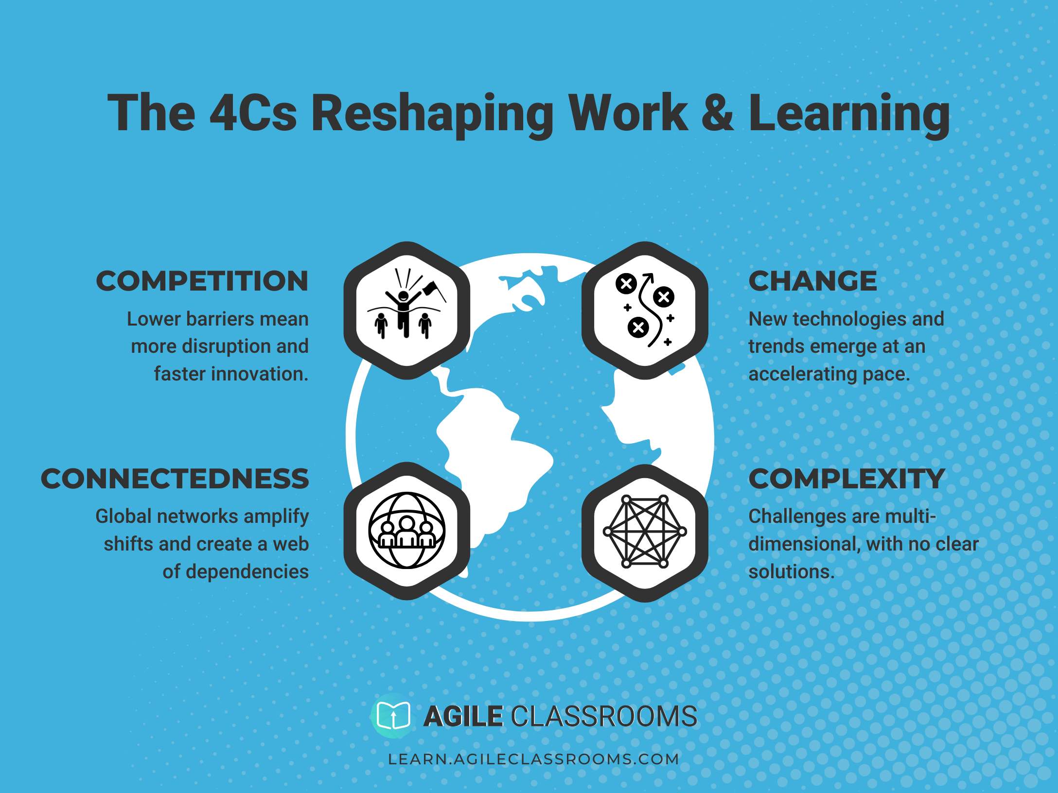 But why do these skills matter more today than ever before? The answer lies in four powerful forces reshaping education and work: Competition, Change, Connectedness, and Complexity.