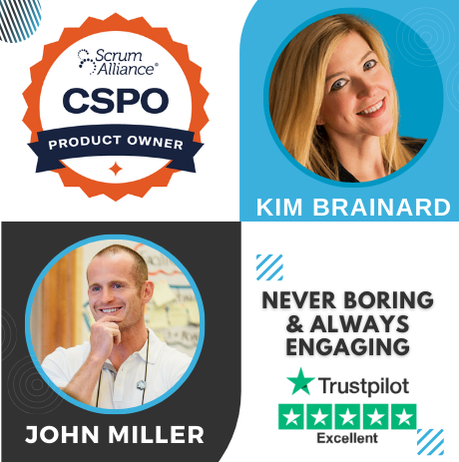 Your journey to Outcome-Driven Product Ownership will be led by either John Miller or Kim Brainard. Both are experienced trainers, but each course session is conducted by only one of them, helping to ensure the class runs.