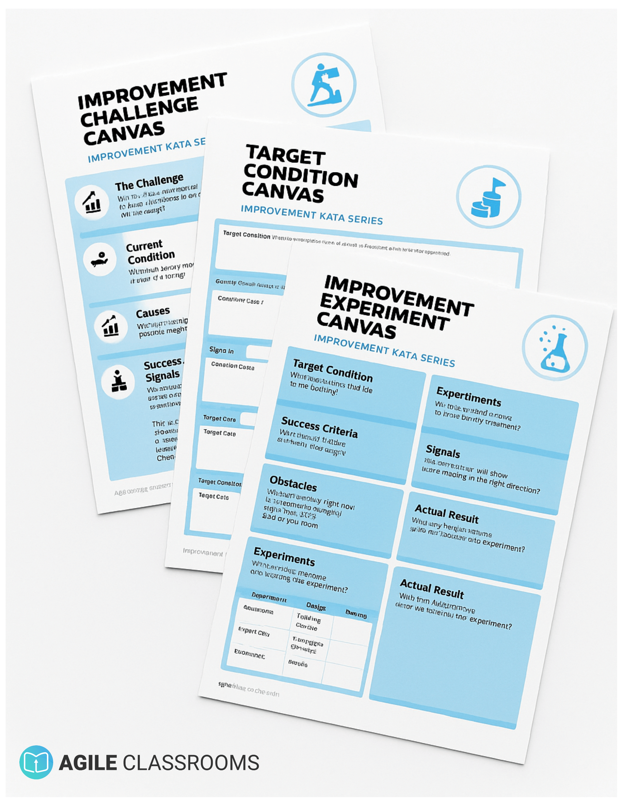 Challenge, Target Condition, and Experiment Canvases that keep your thinking organized and guides you through the routine.