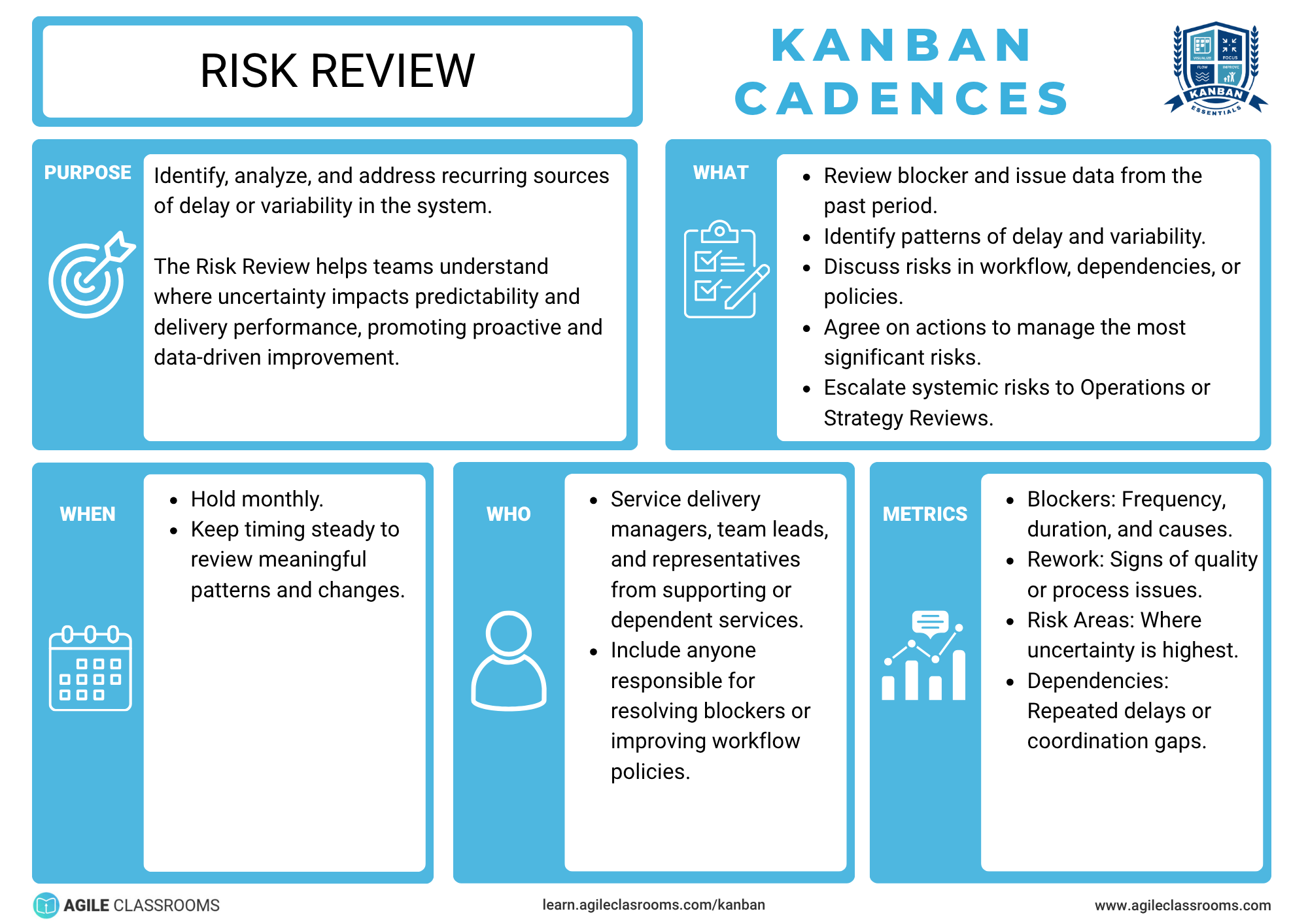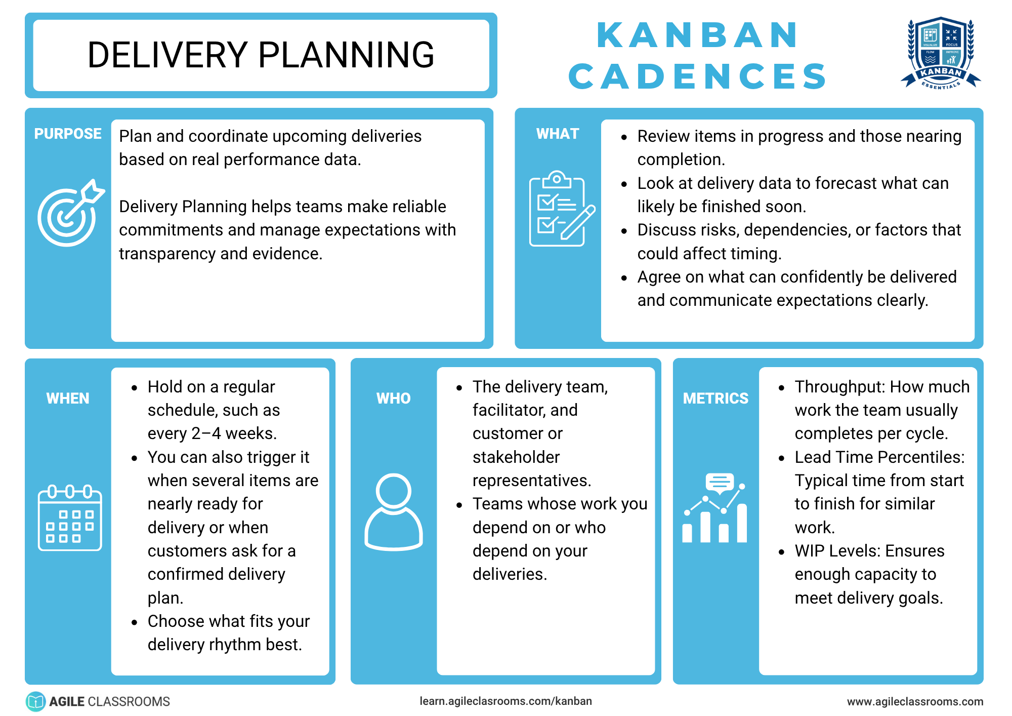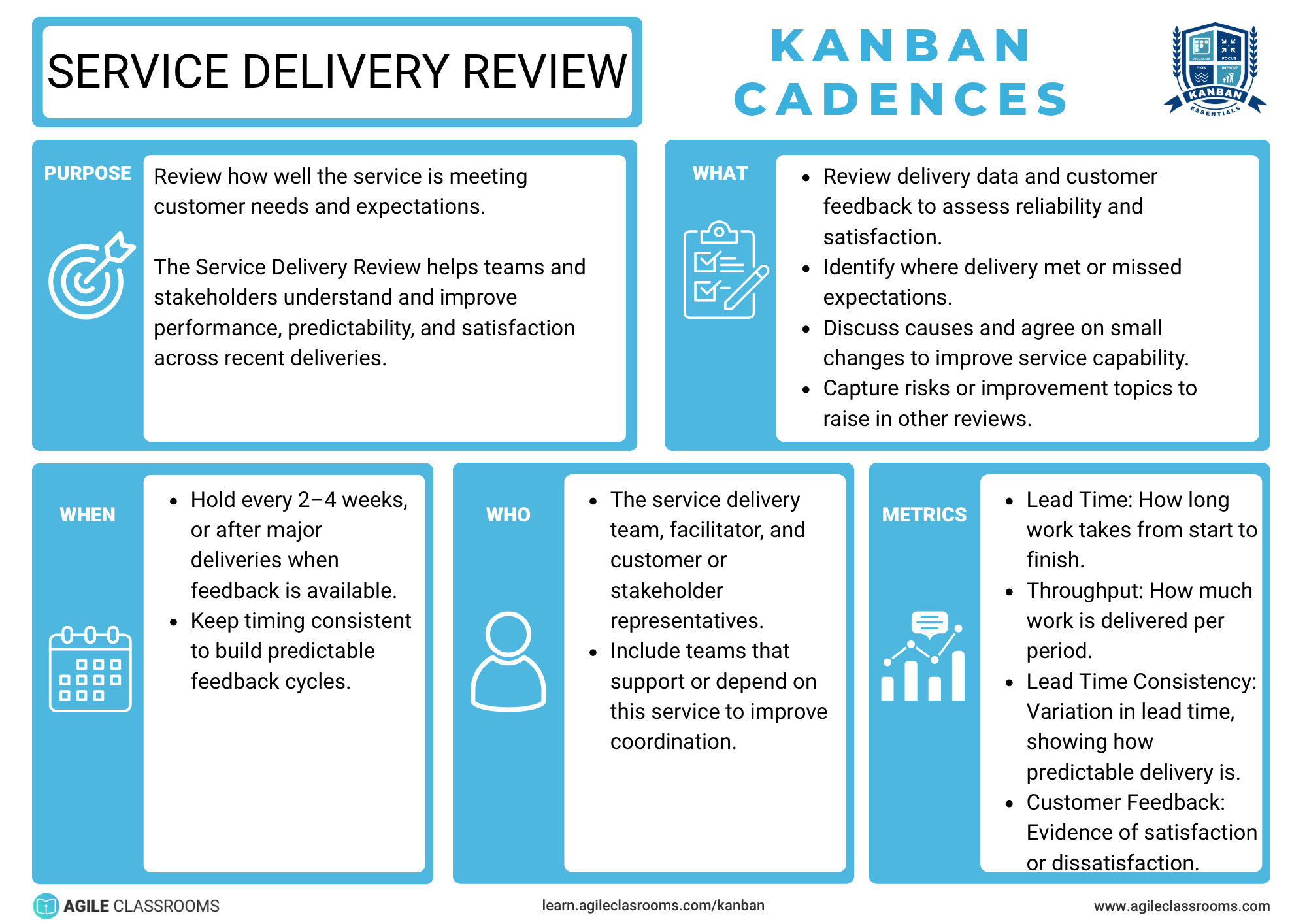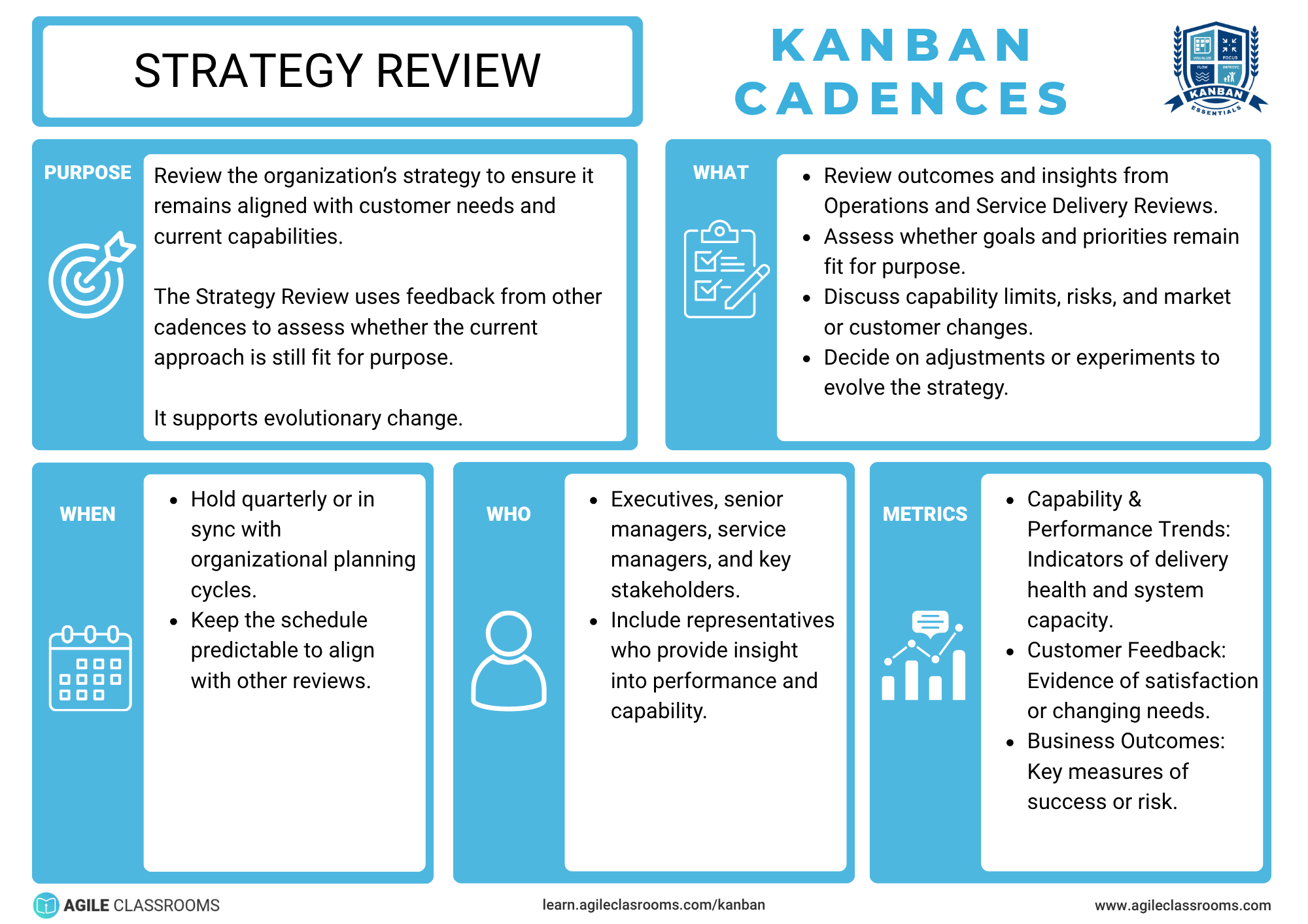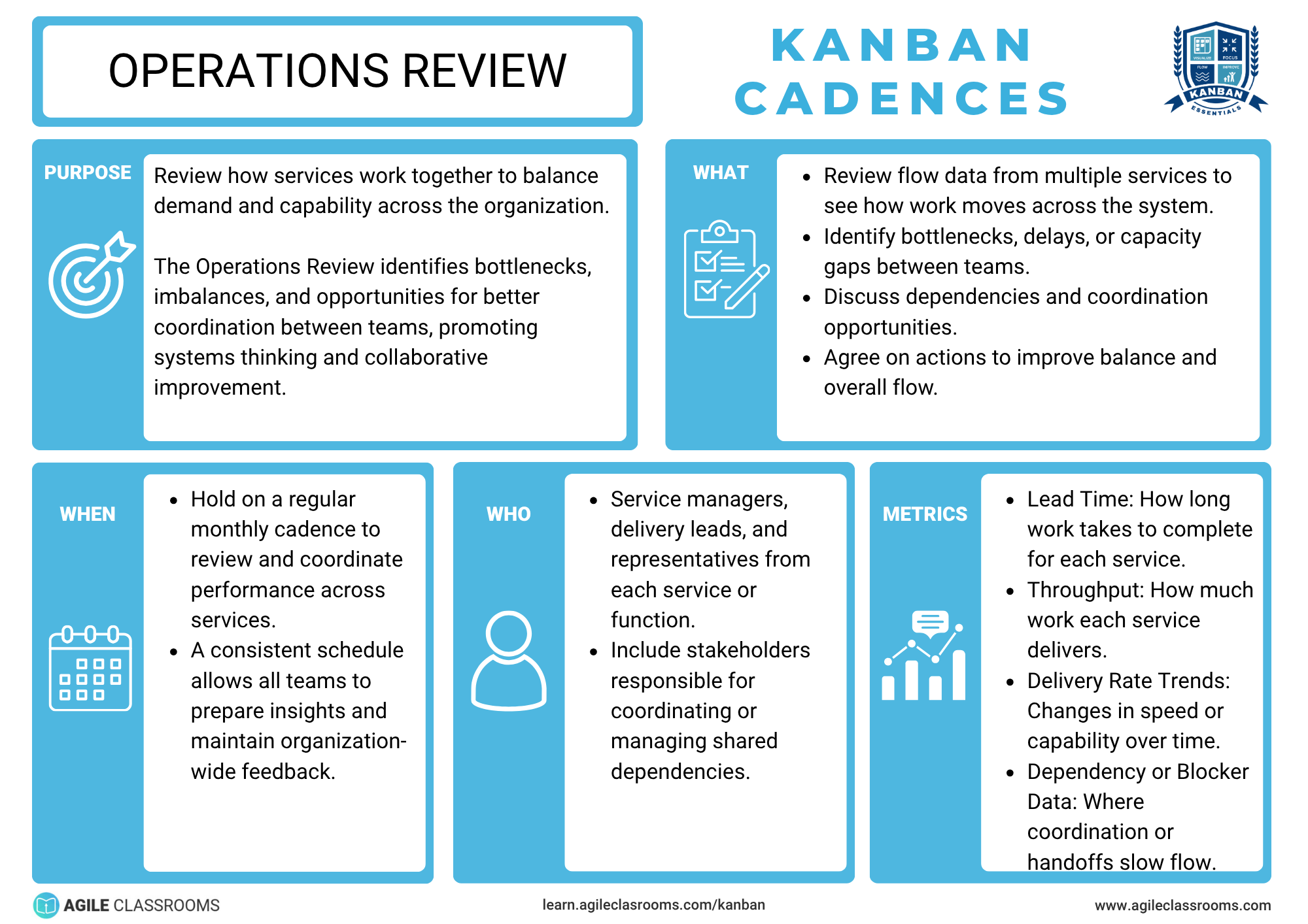 Kanban solves this by using cadences: regular feedback loops designed to keep the system healthy.