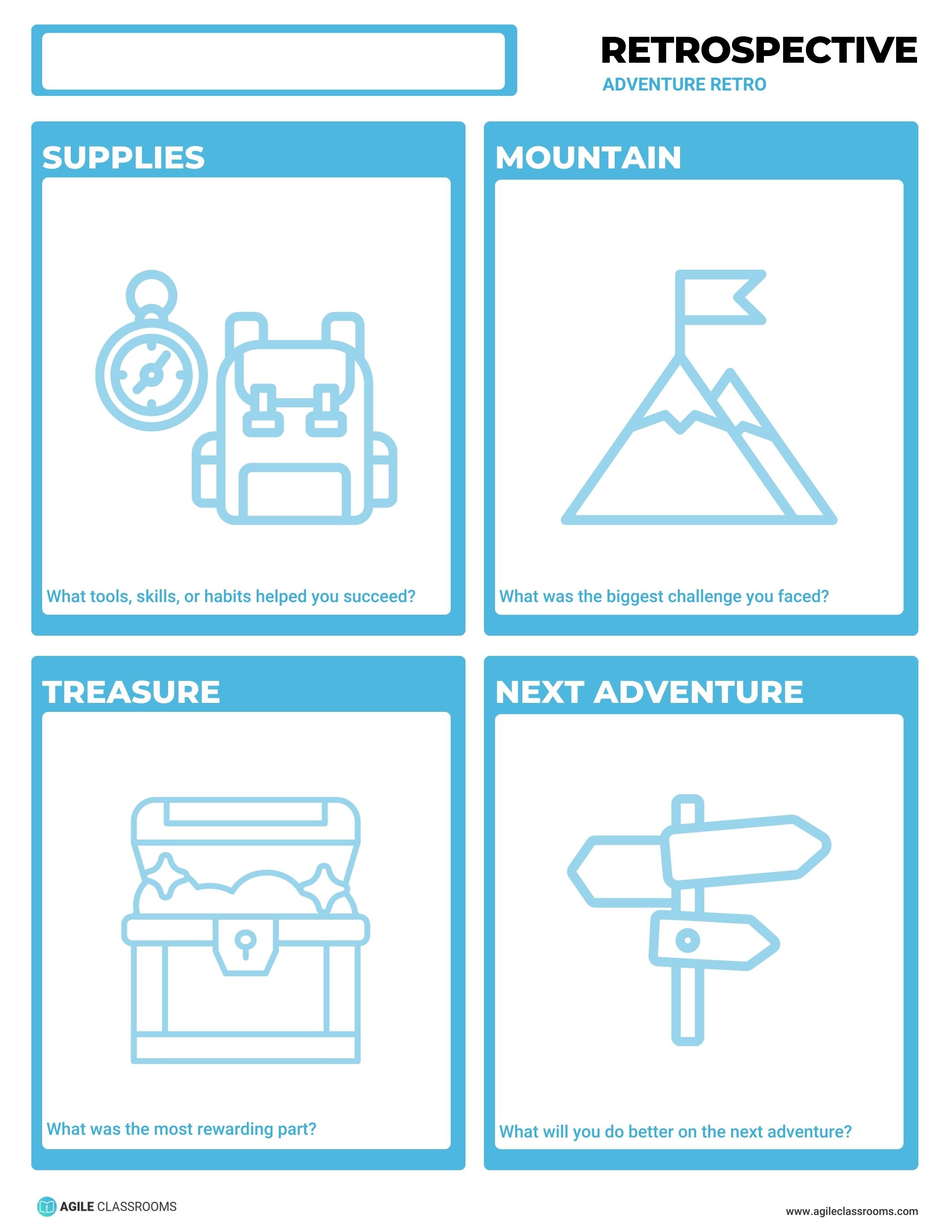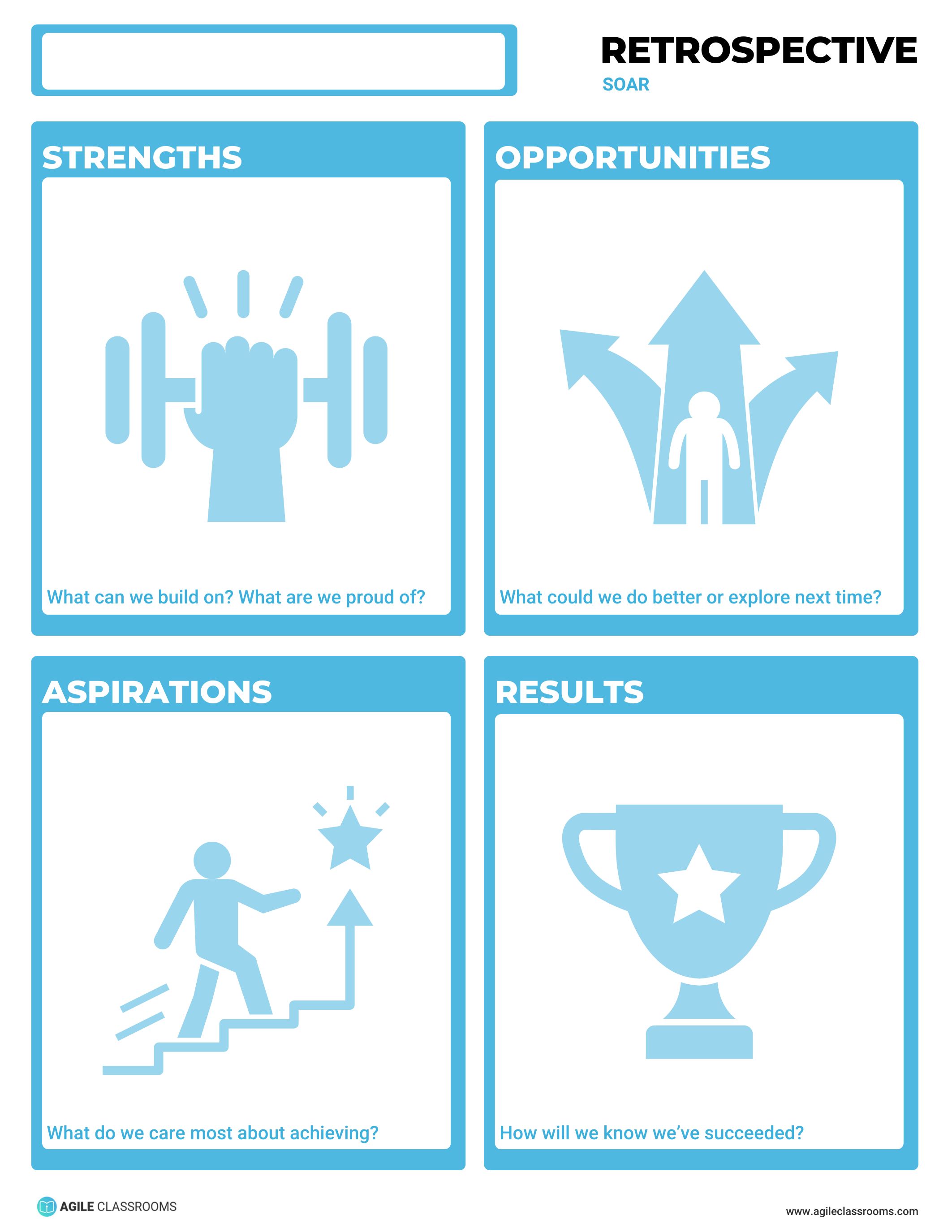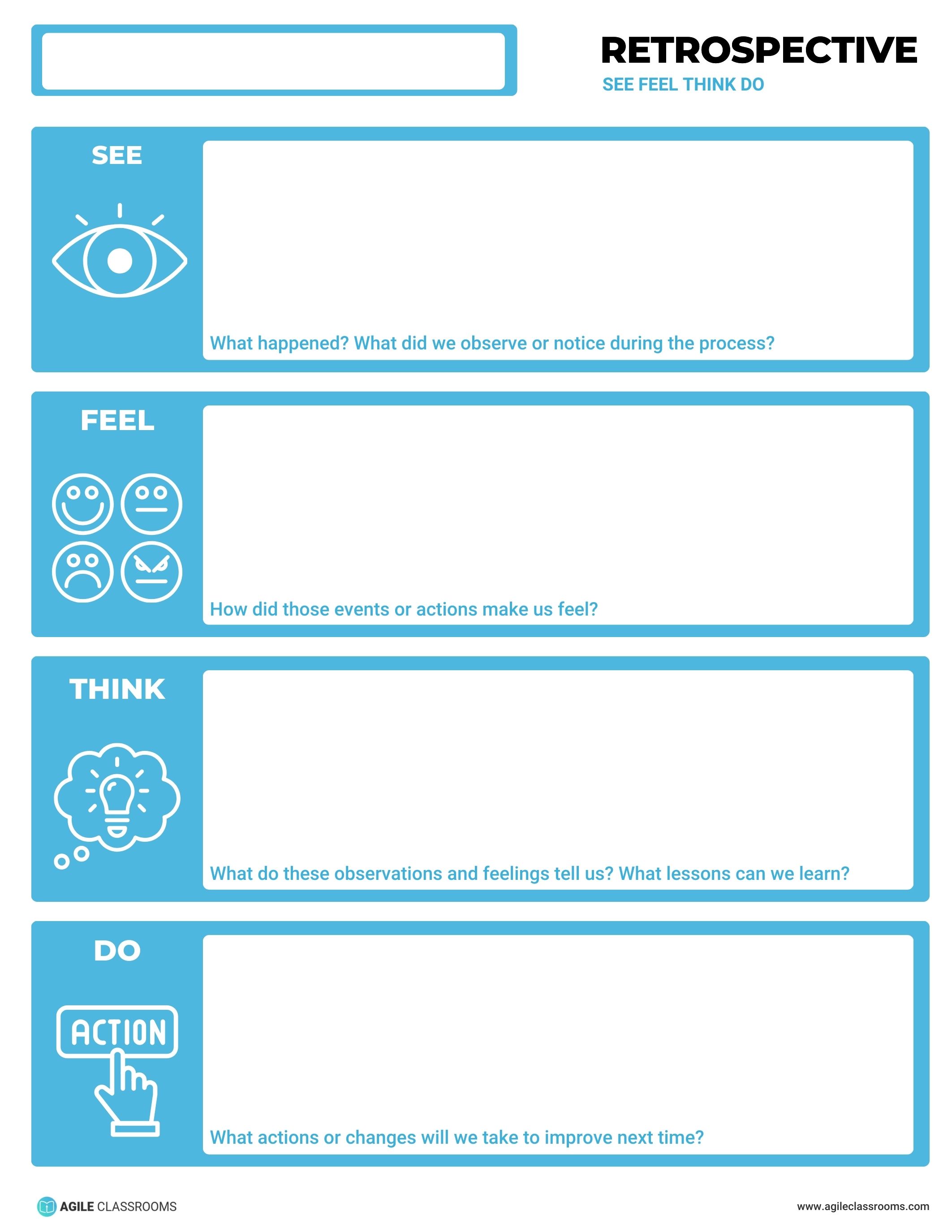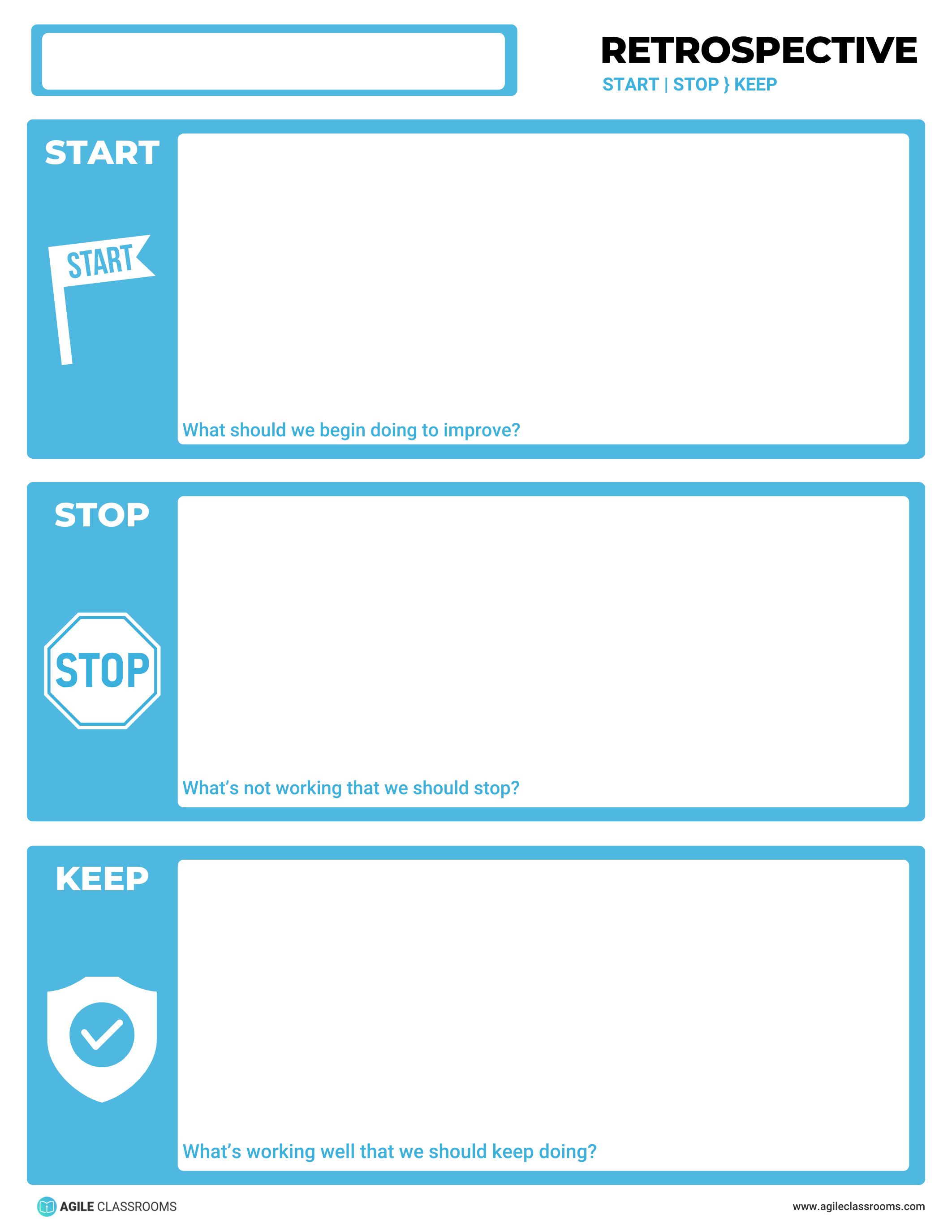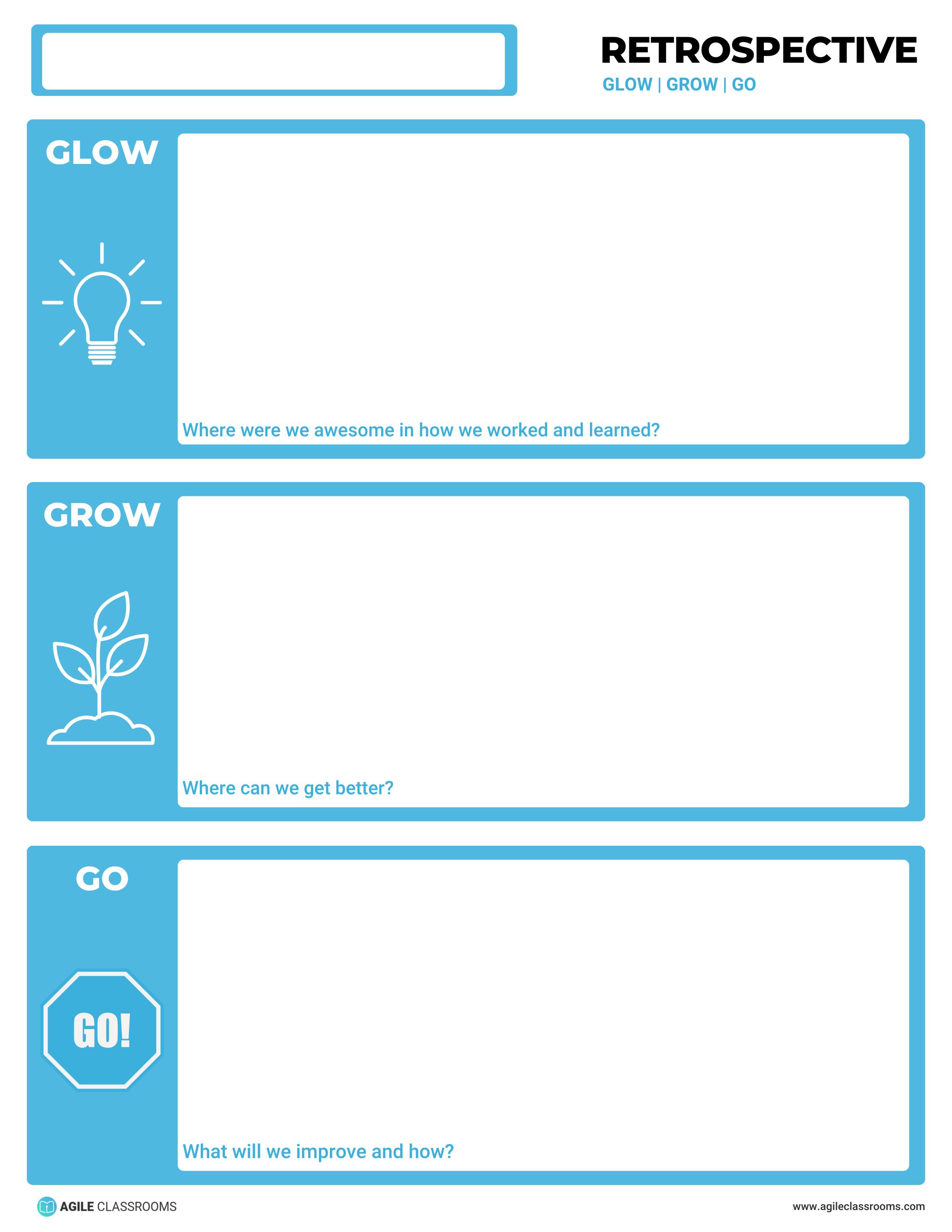 These templates are part of the These templates are a supplemental resource to the Retrospective Routine, one of the five self-directed learning routines in Agile Classrooms. The guide provides educators with the tools and strategies to nurture student growth through reflection, collaboration, and actionable learning. Use these templates to enhance the routine and make it more engaging for your students.