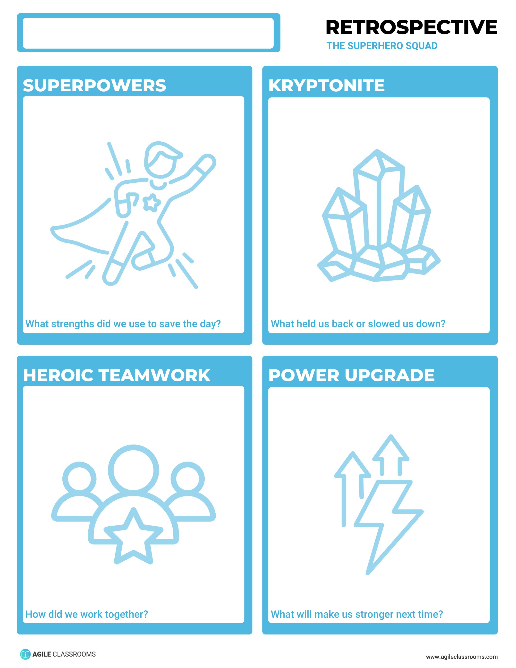 ๐ฆธ Superhero Retro: Reflect on strengths (superpowers), tackle obstacles (kryptonite), and plan upgrades.